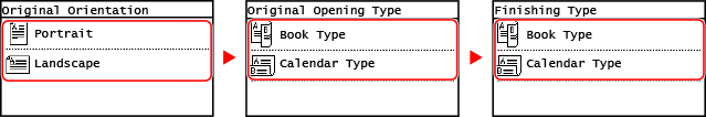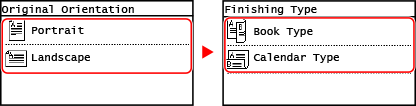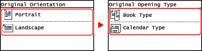 2 | Select [1->2-Sided] and press  . The [Original Orientation] screen is displayed. |