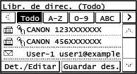 Cuando accede a la Libreta de direcciones desde la pantalla [Inicio] o la pantalla de escaneado o fax, aparece la siguiente pantalla.