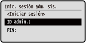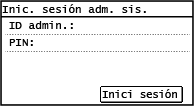 Si se hubiera configurado el ID de administrador del sistema, aparecerá la pantalla de inicio de sesión para operaciones que requieran privilegios de administrador. Introduzca el ID y el PIN del administrador del sistema para iniciar sesión.
