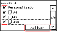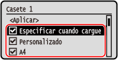 Los tamaños de papel cuyas casillas estén desmarcadas no aparecen en la pantalla de configuración del papel.