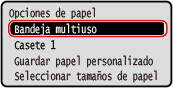 Si siempre usa el mismo papel en la bandeja multiuso, podrá registrar el tamaño y el tipo de papel. Esto evitará que aparezca la pantalla de configuración del papel, de modo que se ahorrará la molestia de tener que configurar las opciones.