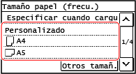 Pulse [Otros tamañ.] y seleccione el tamaño de papel en la lista que aparece.