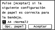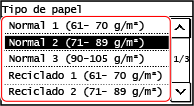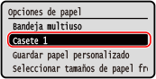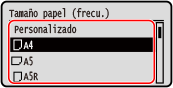 Podrá cambiar el tamaño de papel mostrado en la pantalla en el paso 3. Ocultar tamaños de papel que no se usan |