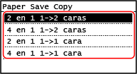 Pantalla [Inicio]Aparece la pantalla [Paper Save Copy].