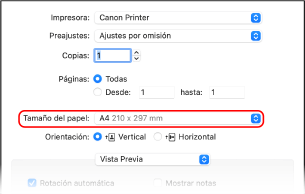 Al imprimir en un papel de tamaño diferente a [Tamaño de página]