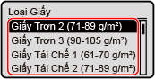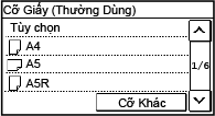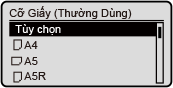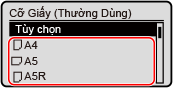 Khi giấy được nạp theo hướng ngang, chọn [A5]. Khi giấy được nạp theo hướng dọc, chọn [A5R].