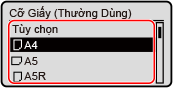 Khi giấy được nạp theo hướng ngang, chọn [A5]. Khi giấy được nạp theo hướng dọc, chọn [A5R].