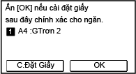 Khi [Thông Báo Kiểm Tra Cài Đặt Giấy] được đặt thành [Bật], màn hình trên được hiển thị khi bạn muốn thay đổi cài đặt, bắt đầu từ [C.Đặt Giấy].