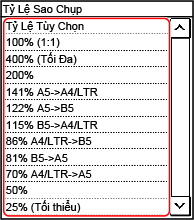Chọn [Tỷ Lệ Sao Chụp] và nhấn