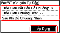 Đặt thời gian đổ chuông và hành động khi nhận fax, và nhấn [Áp Dụng].