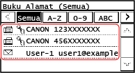Pada panel kawalan, tekan [Alamat Buku] dalam skrin [Rumah].