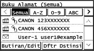 Untuk memaparkan semua destinasi yang didaftarkan ke Buku Alamat, pilih [Semua].