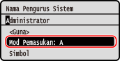 Tekan [A/a/12] untuk menukar jenis aksara yang dimasukkan. Jenis aksara yang dipilih pada masa ini ditunjukkan oleh "A", "a", atau "12" yang dipaparkan di atas dan di sebelah kanan medan input teks.