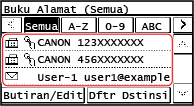 Apabila menentukan destinasi dengan memanggil Buku Alamat dari skrin [Rumah] atau skrin imbasan atau faks, gunakan senarai destinasi.