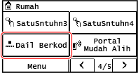 Pada panel kawalan, tekan [Dail Berkod] dalam skrin [Rumah].