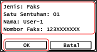 Skrin imbasan atau faks dipaparkan dengan destinasi yang ditentukan telah dimasukkan.