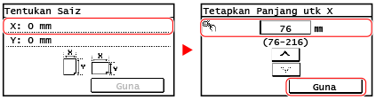 Disyorkan untuk mendaftarkan saiz kertas bukan standard yang kerap digunakan. Anda boleh memanggil saiz kertas berdaftar pada skrin pemilihan saiz kertas, yang menjimatkan masa untuk memasukkan saiz kertas. Anda boleh mendaftar sehingga tiga saiz tersuai.