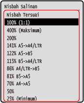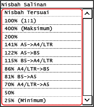 Pilih nisbah salinan tetap daripada senarai atau pilih [Nisbah Tersuai] dan masukkan nisbah tersuai menggunakan kekunci angka.