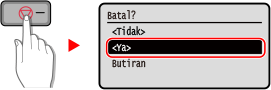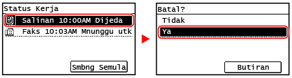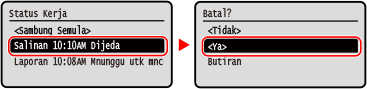 Jika skrin senarai tugas dipaparkan, pilih tugas untuk dibatalkan dan pilih [<Ya>] dan tekan