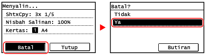 Ikuti arahan pada skrin untuk membatalkan operasi salin.