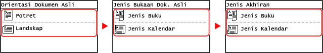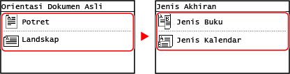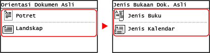 2 | Pilih [1->2 Muka] dan tekan  . Skrin [Orientasi Dokumen Asli] dipaparkan. |