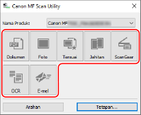 Klik [ScanGear] untuk memaparkan ScanGear MF dan mengkonfigurasikan tetapan imbasan lanjutan. Untuk maklumat lanjut, klik [