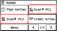 Memeriksa atau Menukar Tetapan Imbasan atau Lokasi SimpanAnda boleh memeriksa dan menukar tetapan imbasan dengan menggunakan MF Scan Utility pada komputer yang digunakan sebagai lokasi simpan. Memulakan MF Scan Utility |