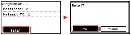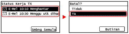 Jika skrin senarai tugas dipaparkan, pilih tugas untuk dibatalkan dan tekan [Ya].