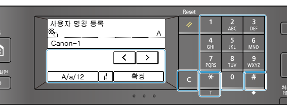 조작 패널의 숫자 키를 사용하여 영숫자 문자를 입력합니다.