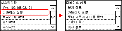 항목 이름이나 버튼을 탭하면 해당 항목을 선택할 수 있습니다. 선택한 화면이 표시되거나, 선택한 기능이 수행됩니다.