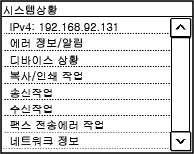이 화면을 사용하여 기기 정보, 사용량 및 로그, 네트워크 설정, 오류 정보를 확인합니다.