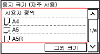 [그외 크기]를 누르고 표시된 목록에서 용지 크기를 선택합니다.