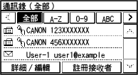 您從 [首頁] 畫面或掃描或傳真畫面叫用通訊錄時,將顯示下列畫面。