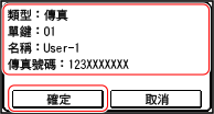 輸入指定目的地後,會顯示掃描或傳真畫面。
