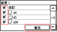 清除要隱藏的紙張尺寸的核取方塊,然後按下 [套用]。