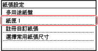 紙匣的紙張尺寸和類型預設設定為 A4 和普通紙2。裝入不同尺寸或類型的紙張時,請變更紙張設定。