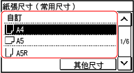 按下 [其他尺寸],然後從顯示的清單中選擇紙張尺寸。