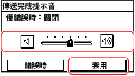 若只要在發生錯誤時發出完成聲音,請按下 [錯誤時] 並設定為 [開啟]。