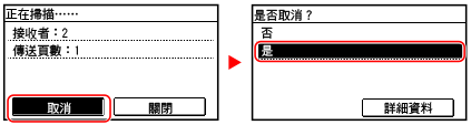 如果顯示工作清單畫面,請選擇要取消的工作,然後按下 [是]。