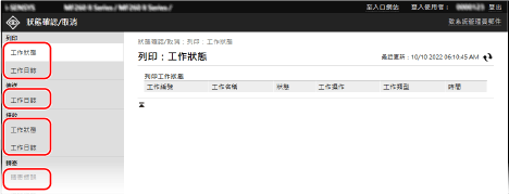當您使用系統管理員模式登入遠端使用者介面時,會顯示所有列印工作的狀態。