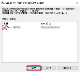 新增的機器將在 [Canon MF Scan Utility] 主要對話方塊的 [產品名稱:] 中顯示。