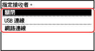 確認快速鍵的註冊資訊透過選擇顯示畫面中快速鍵,您可以確認於步驟 4 中選擇的快速鍵的註冊資訊,步驟如下: [功能表]  [功能設定]  [傳送]  [掃描和傳送設定]  [快速鍵設定]  [首頁] 畫面中的 [確認接收者] |
