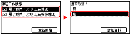 如果顯示工作清單畫面,請選擇要取消的工作,然後按下 [是]。
