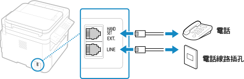 將隨附的電話線連接到本機的電話線路插孔 (LINE) 和牆面的電話線路連接器。