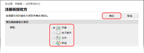 编辑或删除已注册的目的地在步骤 4 中选择接收方,并单击画面中的 [编辑],可以编辑注册的信息。 在步骤 4 中,单击要删除的目的地右侧的 [删除],将会删除目的地。 |