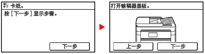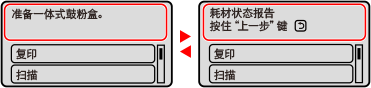 出现错误、本机缺纸或墨粉盒缺墨时,画面上将显示消息。