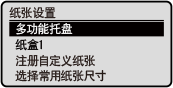 按下 [主页] 画面上的 [纸张设置] 后将显示此画面。使用此画面可配置本机的各种设置。对于 5 行 LCD 型号,按操作面板上的