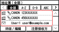 选择地址簿画面顶部的索引,即可筛选和显示接收方。