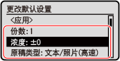 选择要更改的默认设置项目。
