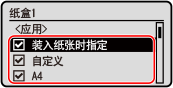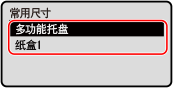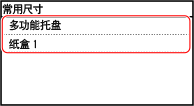 纸张设置屏幕显示已注册的常用纸张尺寸。 如果显示未使用的纸张尺寸,可以为每个纸张来源隐藏这些尺寸,以方便选择纸张尺寸。